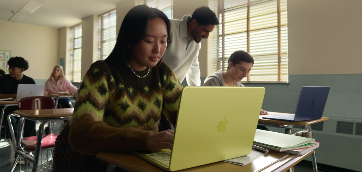 | Stapaneste-ti cursurile MacBook Neo este perfect pentru invatare, fie ca te pregatesti pentru examene, folosesti Apple Intelligence pentru a rezuma notitele de la cursuri3 sau creezi prezentari. |