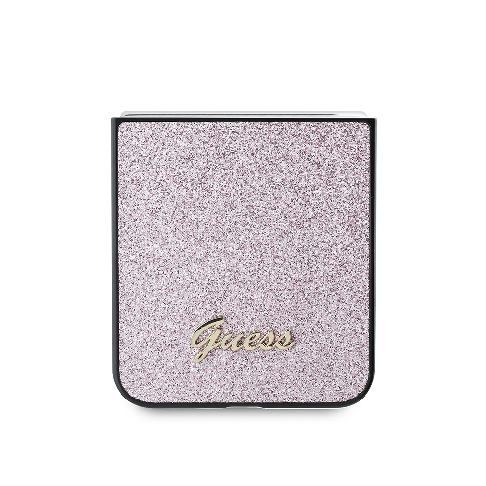 Husa Guess Glitter Script Samsung Galaxy Z Flip6 cu sclipici, roz, GUHCZF6HGGSHP - KatGSM