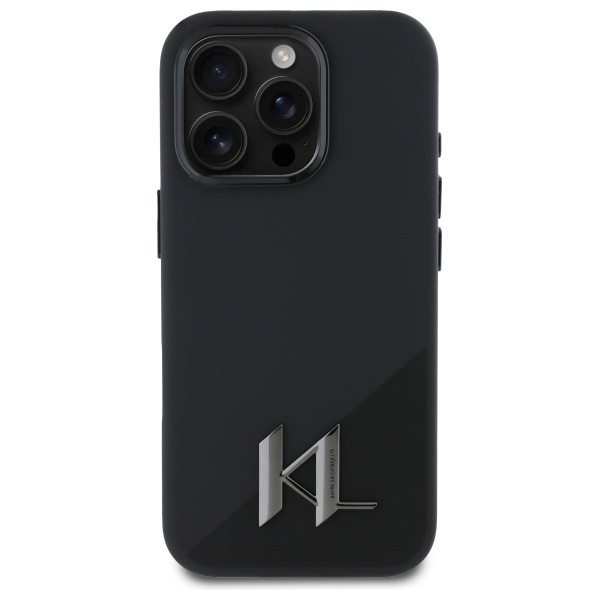 Husa Karl Lagerfeld iPhone 16 Pro Max Silicone MagSafe, Shadow Metal Initial, negru, KLHMP16XSCMKMPCK