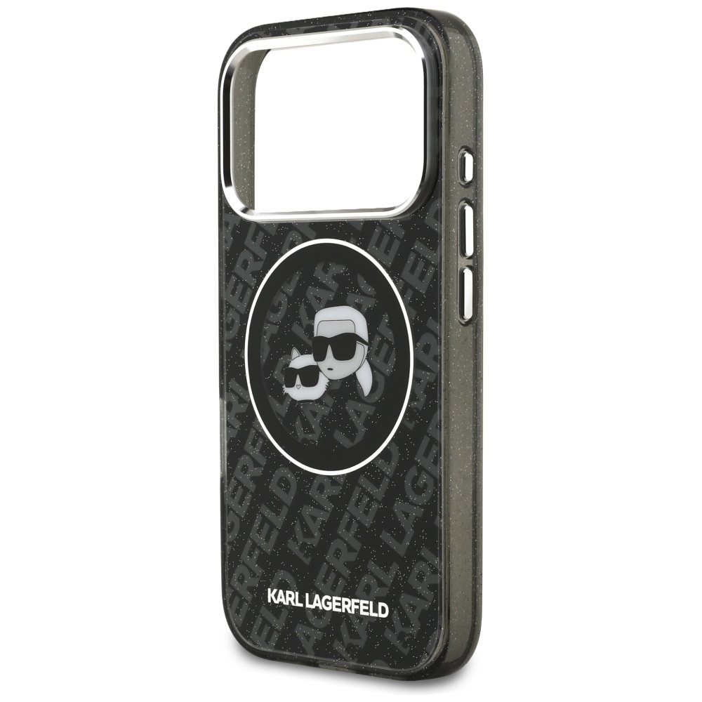 Husa Karl Lagerfeld iPhone 17 Pro Max Glitter MagSafe, Karl&Choupette Head, negru, KLHMP17XHMKBKCHOK